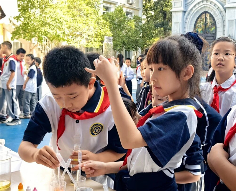 在科学实验展示与体验区,从化学反应的绚烂变化到物理现象的精准规律,从液体张力的微妙平衡到流体力学的动态魅力,生动有趣的实验,将抽象的科学原理转化为可触摸、可感知的探索旅程。同学们亲手操作,亲见奇迹,让科学点亮不灭的好奇心。