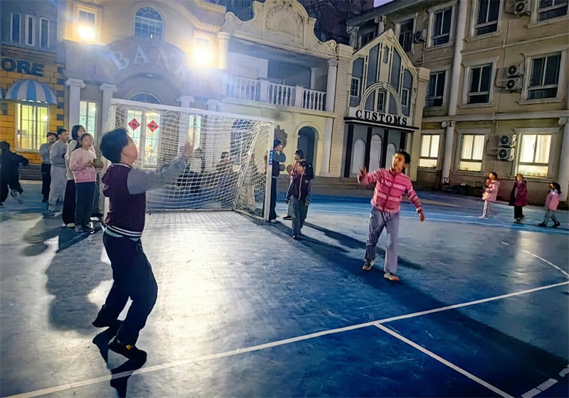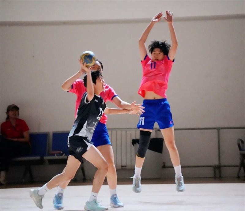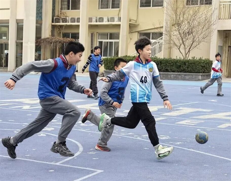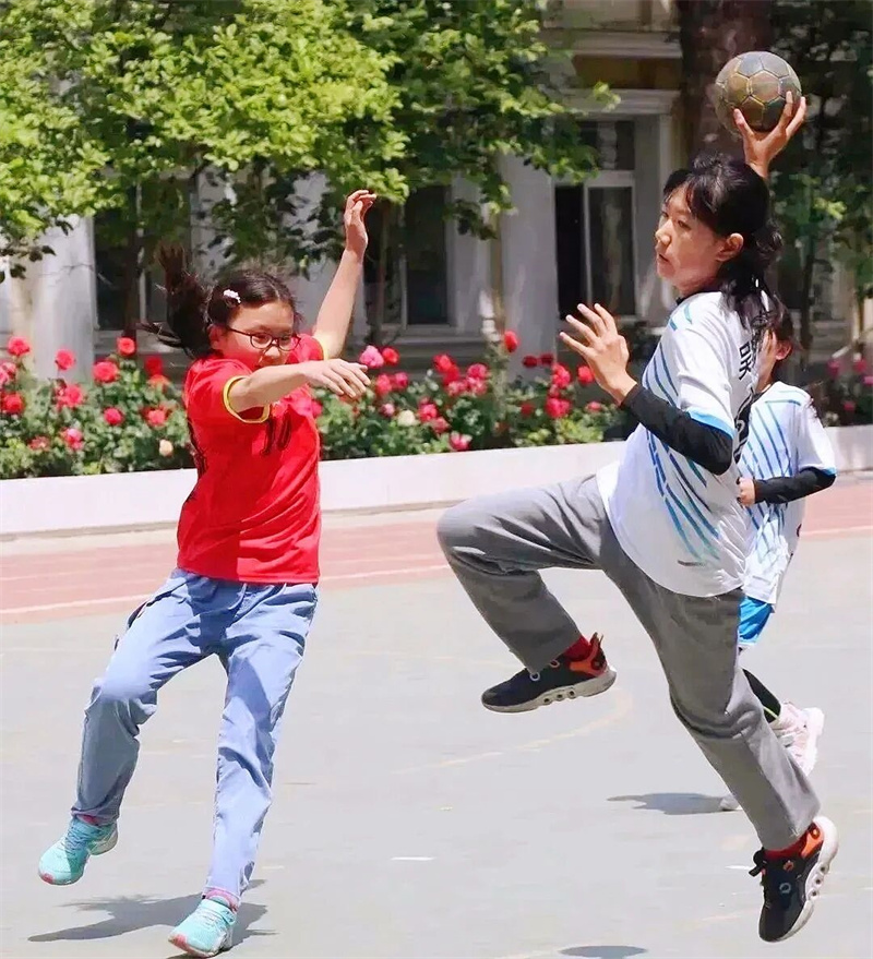 学校基于学生身心发展规律与运动技能形成机制,系统构建“基础—提升—拓展”三级校本课程体系,将“教会、勤练、常赛”理念贯穿教学全过程,通过情境化、游戏化、竞赛化的教学方法,实现运动能力、健康行为、体育品德的协同发展;同步优化课后服务,通过精准训练与个性化指导搭建技能进阶通道,助力每位学子挖掘运动潜能;创新开设校级手球联赛,以赛促练、以赛育人,让赛场成为锤炼意志、凝聚团队的成长平台;搭建从校园梯队到区、市级专业手球队伍人才输送桥梁,让少年的手球梦想与为国争光的时代使命同频共振、同向而行。