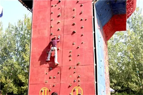 刺激的攀岩开始啦!看着孩子们灵巧的身姿在岩壁上自由行走,真替他们紧张,也为他们骄傲。在一旁陪伴的老师也忍不住尝试了一下,学生们纷纷为老师助威呐喊,老师的勇敢也激起了学生们的斗志,一个个都力争爬到最高点!