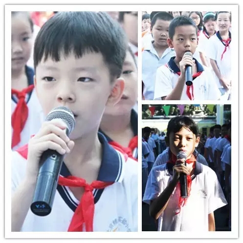 精诚实验小学本部校长周秀兰在发言中表达了对新生的热烈的欢迎,希望他们能够早日适应小学的学习生活。随后,周校长以纪念抗战胜利70周年为主题和学生进行了亲密互动,她对每个年级的学生提出了不同的问题,由浅入深,学生们踊跃回答,而且回答的相当精准,有的学生还即兴发表了自己独到的见解和感受。可见在刚刚过去的假期里学生们对大阅兵的关注和对国家大事的关心。