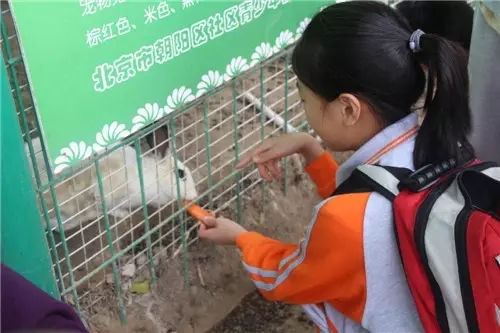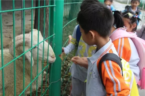 活动的最后,工作人员还带领学生们见到了他们期盼已久的小动物,有绵羊、兔子、油鸡、孔雀……学生们不仅和这些动物进行了近距离接触,还体验到了喂养的乐趣。