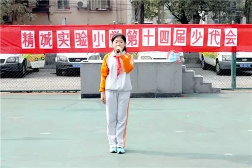 10月16日,精诚实验小学操场上队歌嘹亮,红旗飘扬,第十四届少代会在此隆重举行。