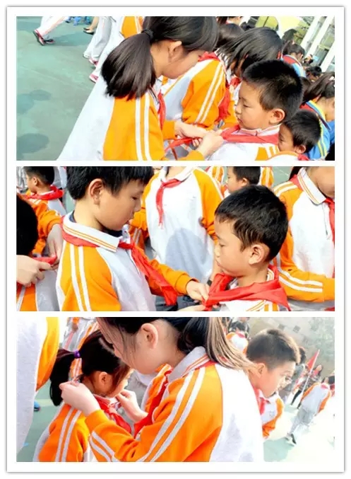 接下来,辅导员宣布了经少先队大队委员会批准的108名同学为光荣的少先队员,并由六年级全体学生为新队员授巾。辅导员带领全体新队员在红旗下庄严宣誓:我热爱中国共产党,热爱祖国,热爱人民,好好学习,好好锻炼,准备着:为共产主义事业贡献力量!嘹亮的宣誓声响彻操场,相信少先队的光荣历史因为你们的加入将谱写得更加辉煌!