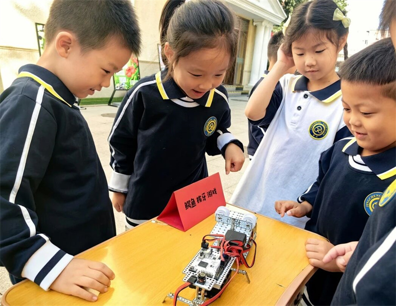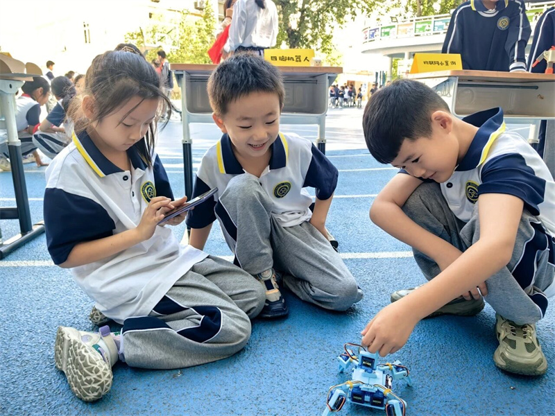 科创与机器人展示区汇聚了同学们充满奇思妙想的创新成果,在这里,人工智能的智慧与机械的精准巧妙结合,编程的逻辑与创造的激情相互碰撞。同学们在与机器人的互动中感受科技的无限魅力,共同点燃探索未来的梦想火花。
