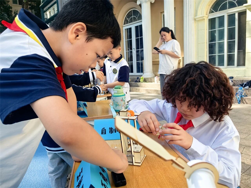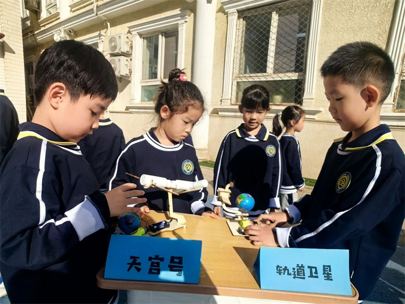 在科学手工展示区,同学们拼装“玉兔号”月球车模型,在齿轮与线路中触摸中国航天的脉搏;完成基础电路实验,从导线连接中收获点亮灯泡的喜悦;制作绕轨卫星模型,理解天体运行的规律;搭建简易幻灯机,看光与影如何交织出清晰的图像,领略光学成像的奇妙魅力……以双手践行创意,用巧思激活科技,亲身体验着科学与工程融合带来的无限乐趣。