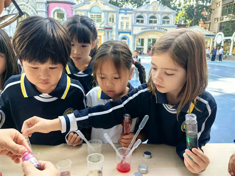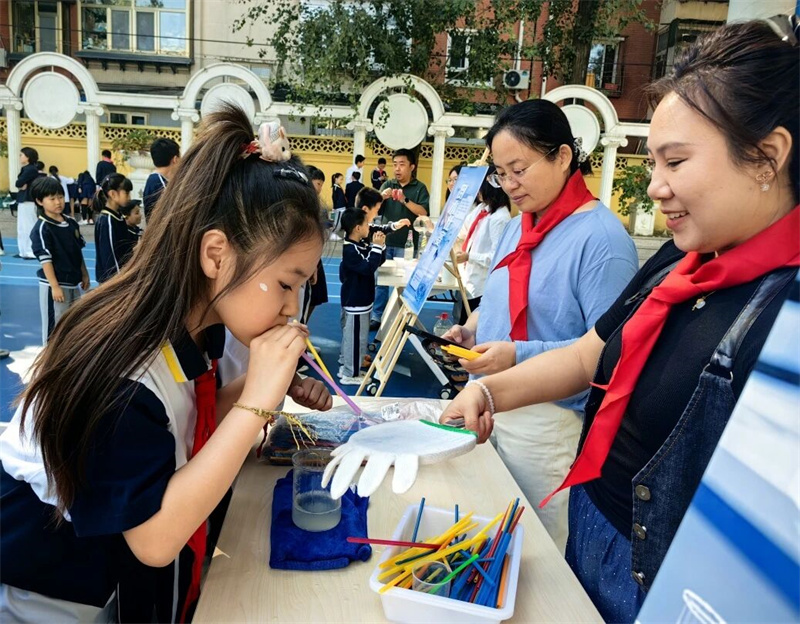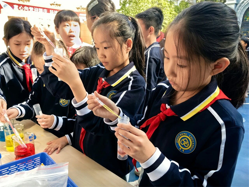 在科学实验展示与体验区,从化学反应的绚烂变化到物理现象的精准规律,从液体张力的微妙平衡到流体力学的动态魅力,生动有趣的实验,将抽象的科学原理转化为可触摸、可感知的探索旅程。同学们亲手操作,亲见奇迹,让科学点亮不灭的好奇心。
