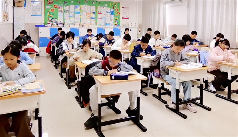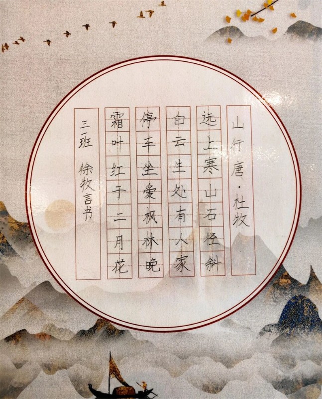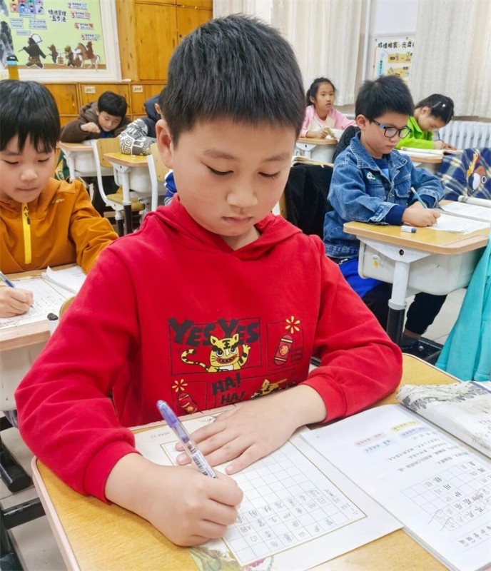 秉承“全员参与,以赛促练”宗旨,书写比赛初赛在各个班级同步展开。此刻的教室既是书香气弥漫的“日常练场”,也是激情飞扬的“荣誉赛场”。孩子们以教材中的经典古诗词为内容,展开了一场全神贯注的笔墨角逐。