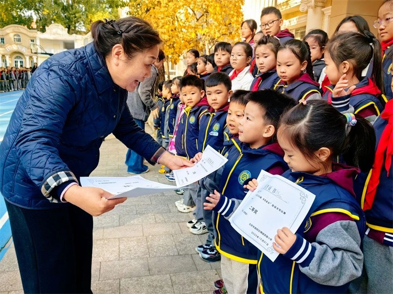 升旗仪式上,精诚实验小学党支部书记刘惠兰为在本次比赛中荣获“书法之星”的同学颁奖,鼓励他们以笔为翼,在汉字的浩瀚苍穹中持续追梦,精心描绘属于自己的多彩未来。