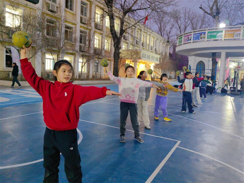 学校基于学生身心发展规律与运动技能形成机制,系统构建“基础—提升—拓展”三级校本课程体系,将“教会、勤练、常赛”理念贯穿教学全过程,通过情境化、游戏化、竞赛化的教学方法,实现运动能力、健康行为、体育品德的协同发展;同步优化课后服务,通过精准训练与个性化指导搭建技能进阶通道,助力每位学子挖掘运动潜能;创新开设校级手球联赛,以赛促练、以赛育人,让赛场成为锤炼意志、凝聚团队的成长平台;搭建从校园梯队到区、市级专业手球队伍人才输送桥梁,让少年的手球梦想与为国争光的时代使命同频共振、同向而行。